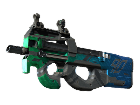 Easily recognizable for its unique bullpup design, the P90 is a great weapon to shoot on the move due to its high-capacity magazine and low recoil. It has been custom painted using an angular blue and green design.